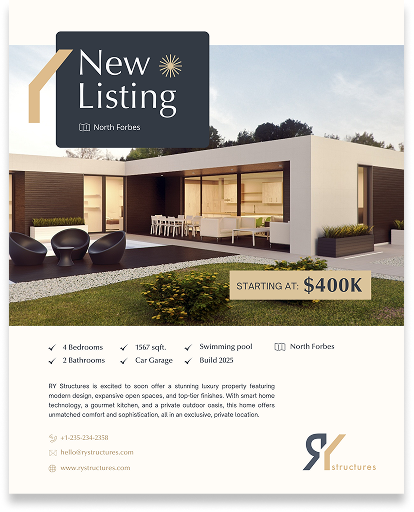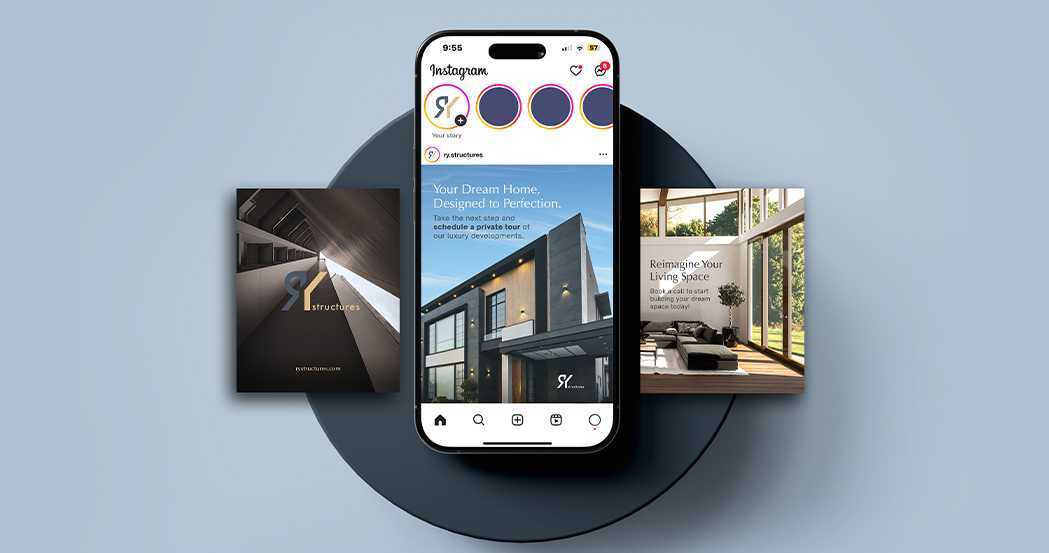 The 360° project for RY Structure, a luxury startup developer, established a refined brand identity and showcased their high-end vision. From a sleek brand and elegant showroom design to a sophisticated brochure and strong social media presence, every detail emphasized their luxury positioning. 3D renders of future properties were created to highlight their exclusive developments, positioning RY Structure as a leading force in the luxury real estate market.